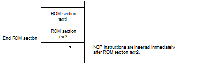 For insertion between a ROM section and RAM section, NOP instructions are inserted only when the RAM section is allocated to larger addresses than the ROM section addresses (When the RAM section addresses are smaller than the ROM section addresses, NOP instructions are not inserted between them). |