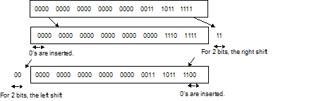 If the number of shifted bits is 0, the value of the first term is returned as is. If the number of shifted bits exceeds 31, 0 is returned.