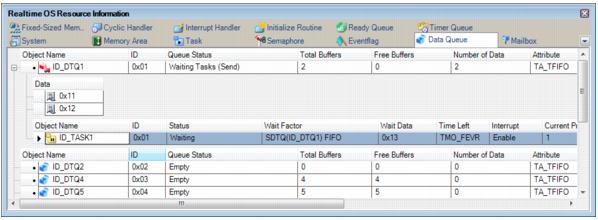 - From the [View] menu, select [Realtime OS] >> [Resource Information].