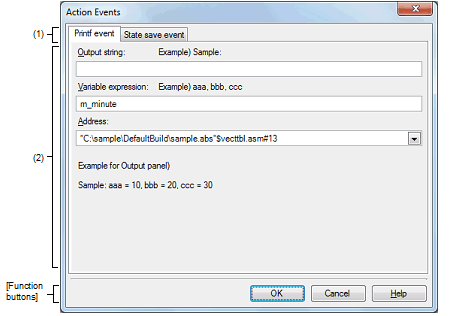 This dialog box is used to configure action events (see "2.16 Set an Action into Programs").