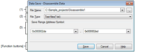 This dialog box is used to save data displayed in the Disassemble panel, Memory panel, or Trace panel, and save uploaded data (see "2.5.3 Execute uploading").