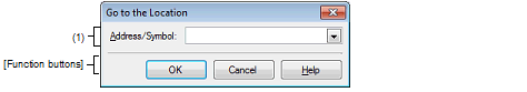 If this dialog box is opened from the Disassemble panel, a symbol name at the current caret position can be complemented by pressing the [Ctrl] + [Space] key in this text box (see "2.19.2 Symbol name completion function").