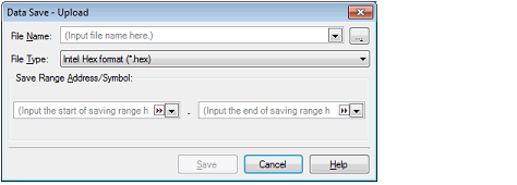 The contents of the memory of the debug tool currently connected can be saved (uploaded) in an arbitrary file.