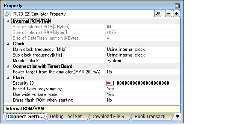 Configure the operating environment on the Property panel below when using EZ Emulator.