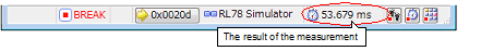 In the debug tool, there is a function to measure the program execution time (Run-Break time) from the start to the stop.