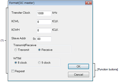 This dialog box is used to set the serial format for the serial interface (IICA).