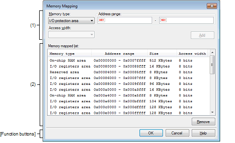 Memory Mapping Dialog Box [E1] [E20] [EZ Emulator]