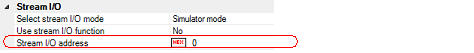 To implement I/O function of the simulator, first specify the I/O address in the [Stream I/O address] property within the [Stream I/O] [Simulator] category on the Property panel's [Debug Tool Settings] tab. This can be done by entering address expressions in the range of 0 to "last address of address space" directly from the keyboard.