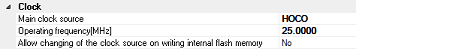Select EXTAL frequency or internal HOCO as the main clock source. [EXTAL] will be displayed for microcontrollers with no internal HOCO.