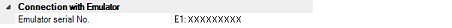 Serial numbers of all connected E1 emulators are displayed in the drop-down list.