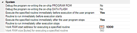 Specify the address to be executed immediately before the user program execution. This property is displayed only when [Execute the specified routine immediately before execution of the user program] property is set to [Yes].