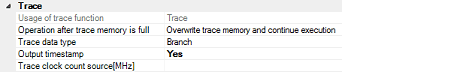 The change options in this property vary depending on the microcontroller series and the specified value of [Trace data type] property, as follows: