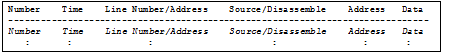 The contents of collected trace data can be saved, after specifying a range of data, in a text file (*.txt) or CSV file (*.csv) format. When saving to a file, the latest information will be retrieved from the debug tool, and saved according to the display format on this panel.