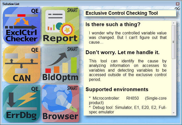 Renesas has prepared specialized solutions for the user's problems in order to solve various problems encountered in development.