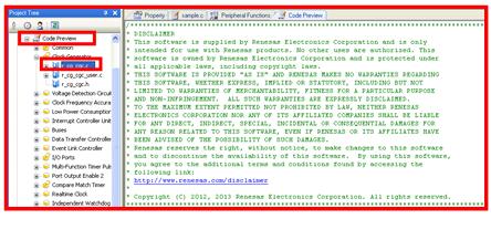 You can confirm the content of the program that will be generated without actually generating the code. This is called a "code generator preview" function. Double-click the source file from [Code Generator (Design Tool)] > [Code Preview] in the Project Tree.