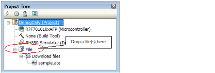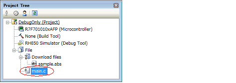 When you add load module files to the Download file node of the project tree, and download to the debug tool, based on source file information obtained from the download file, source files are automatically added to the project tree.