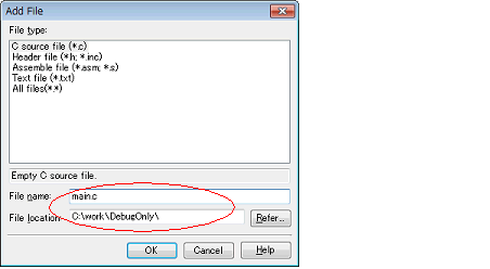 By adding the C source file to the project, you can perform source level debugging (step execution in source level units, etc.).
