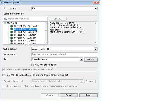 You can create a subproject with CC-RL as the build tool by reusing the file structure of a subproject with CA78K0R as the build tool (See "CS+ Integrated Development Environment User’s Manual: Build Tool Operation" for details). |