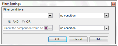 When performing filtering using one filter condition, set the combo box in the 2nd filter condition setting area (left side) to "blanks", and the combo box (right side) to "no condition".