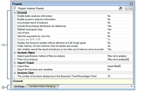 On the Project Tree panel, select the [Program Analyzer (Analyze Tool)] node, and then select [Property] from the [View] menu. |