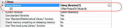 You can also set the option in the same way with the [Using libraries] property in the [Frequently Used Options(for Link)] category on the [Common Options] tab. |