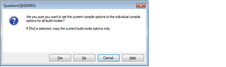 Select [Yes] in the [Set individual compile option] property in the [Build] category. The Message Dialog Box will open.