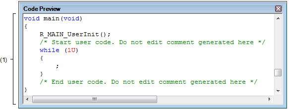 This area allows you to confirm the source code (device driver program) that reflects the information configured in the Peripheral Functions panel.
