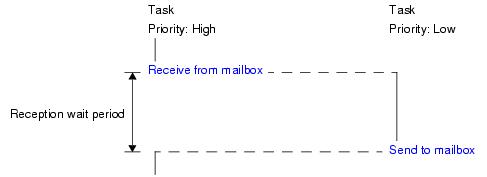 As a result, the invoking task is unlinked from the ready queue and is moved from the RUNNING state to the WAITING state (receiving waiting for a mailbox).