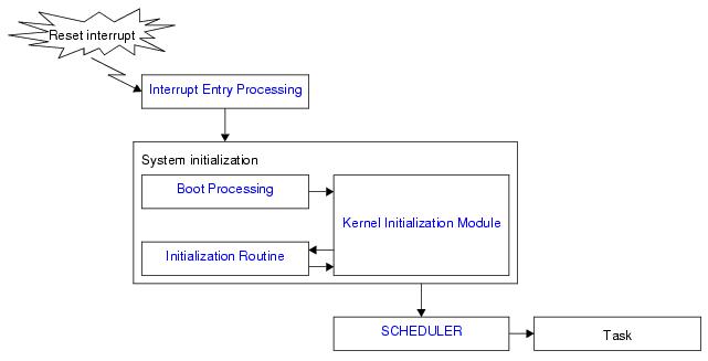 The following shows a processing flow from when a reset interrupt occurs until the control is passed to the task.