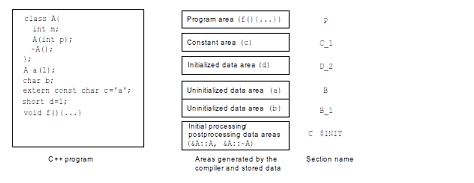 Examples 2. | A program example is used to demonstrate the correspondence between a C++ program and the compiler-generated sections. |