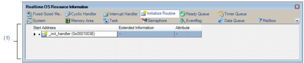 Remark If the initialize routine information (e.g. Start Address and Extended Information) in each cell is double clicked, then Editor panel displays the source file of the initialize routine, and the caret moves to the corresponding location.