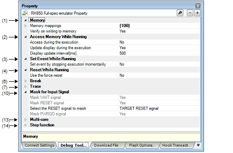 If this property cannot be set as [Yes] in the POD, it is automatically fixed to [No] after connection to the debug tool (changing from this setting is not allowed). |