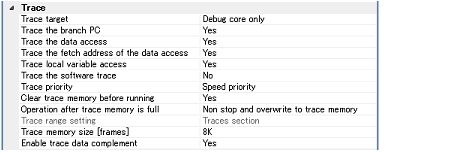 This trace operation can be configured in the [Trace] category on the [Debug Tool Settings] tab in the Property panel.