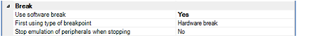This break operation can be configured in the [Break] category on the [Debug Tool Settings] tab of the Property panel.