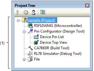 This area displays components of the project (microcontroller, design tool, build tool, etc.) in a tree structure.