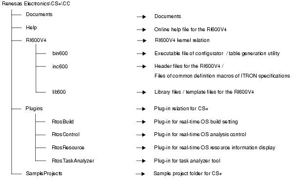 The following shows the folder configuration when the files stored in the RI600V4 distribution media have been installed.
