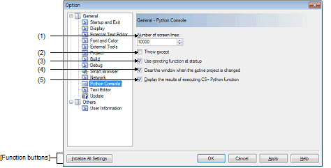 Figure A.54 | Option Dialog Box ([General - Python Console] Category) |
