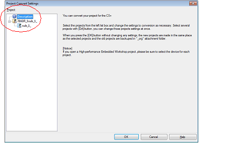 Project Convert Setting Dialog Box (When Main Project Is Selected)