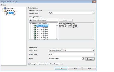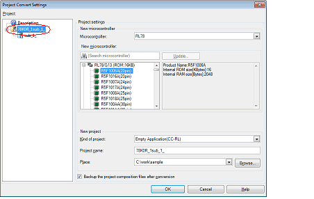 After setting the microcontroller to be used for the conversion target project, and project type, name, and place of creation settings, click the [OK] button.