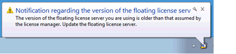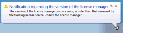 icon indicates mismatches between versions registered with the license manager and the floating license server.