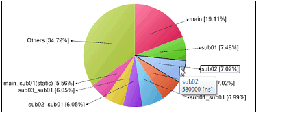 Use this tab to display the acquired function information in a pie chart of the function execution times.