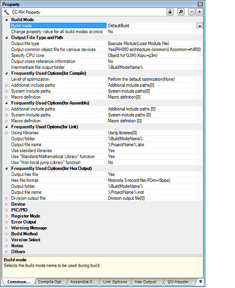 [Object for G3MH(-Xcpu=g3mh)] is displayed when [Always latest version which was installed] or V1.02.00 or a later version is selected for the [Using compiler package version] property under the [Version Select] category in an environment where V1.02.00 or a later version of the CC-RH compiler has been installed.