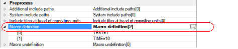 The macro definition setting is made with the [Macro definition] property in the [Preprocess] category.