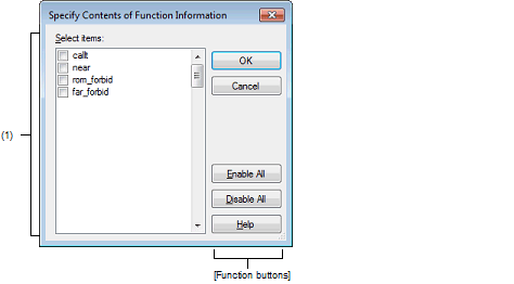 The list of the contents of function information which can be specified for the area that this dialog box is called from is displayed.