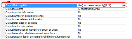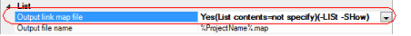 To output the link map file, set the [Output link map file] property in the [List] category.