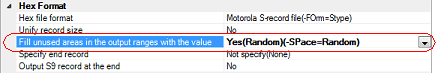 Select [Yes(Random)(-SPace=Random)] in the [Fill unused areas in the output ranges with the value] property in the [Hex Format] category.