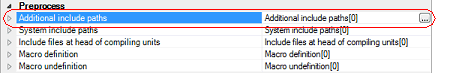 To change the include paths, you can use the [...] button or enter the path directly in the text box of the subproperty.