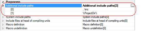 If you click the [OK] button, the entered include paths are displayed as subproperties.