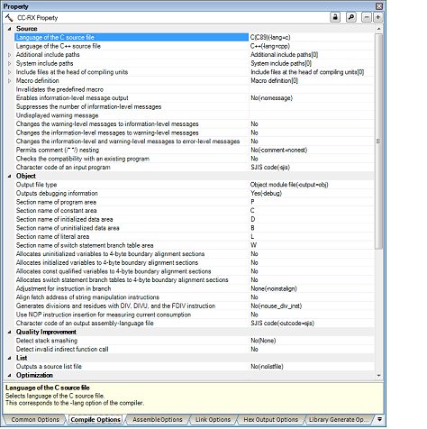 In case of misra2012 and in case of CC-RX V2.05.00 or earlier, even if [C99(-lang=c99)] is selected in the [Language of the C source file] property, MISRA C checking is done in the range of C89 specification.