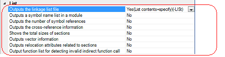 When outputting the linkage list file, you can select the contents of the linkage list output by the linker.